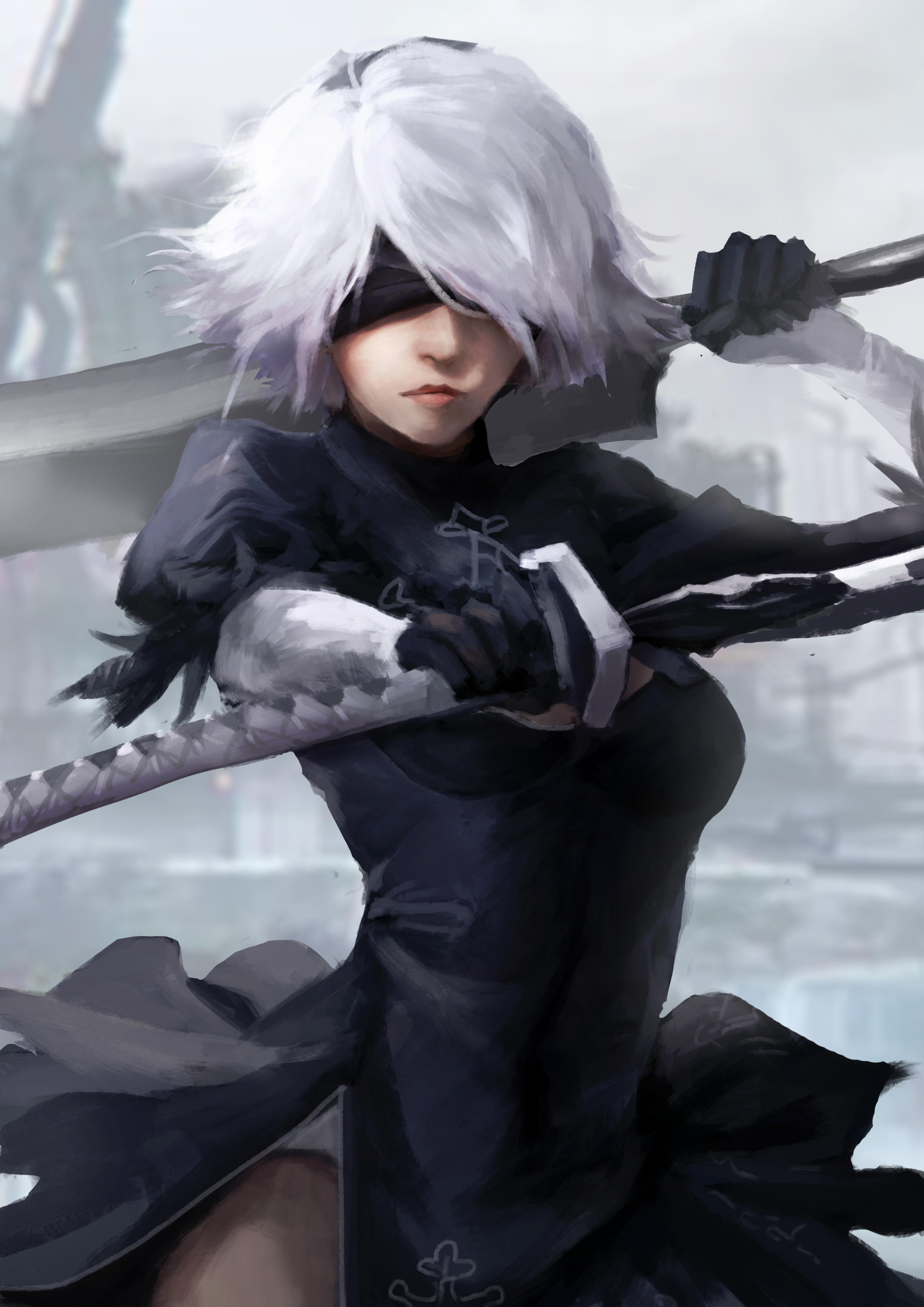 Cet univers, constamment en proie au désenchantement, il me subjugue et il me met mal à l’aise. Je me sens futile, et à la fois ça me fascine, qu’on me remette ainsi en doute. Quel étrange sentiment, venant d’un jeu signé PlatinumGames, plutôt connu pour sa légèreté que sa profondeur. Et voilà que sous la poupe de Yoko Taro, le studio accouche d’un vague à l’âme dansant, à mi-chemin entre action pure et narration contemplative. Une formule qui côtoie, mais de loin seulement, la grande vogue des monde ouverts, aussi grands étrangleurs de narration. NieR : Automata parvient néanmoins, avec une modestie et une exubérance bien japonaises, à allier l’ouvert à l’intime, à donner de la présence à l’histoire malgré la tranquillité des grands vides. Il réussit, surtout, à conserver une ardeur, une dynamique, qui tressaille en ses pics au gré des combats, pour mieux retomber dans les graves silences des cœurs qui se broient.